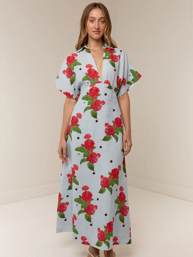 The Jasmine Dress is crafted from a Premium Linen, printed in our exclusive Sky Garden print. Offering a relaxed, flattering fit with oversized sleeves that blend into a slim A-line skirt. The neckline is a flattering deep V-shape that also features a hidden hook and eye for additional coverage if desired.