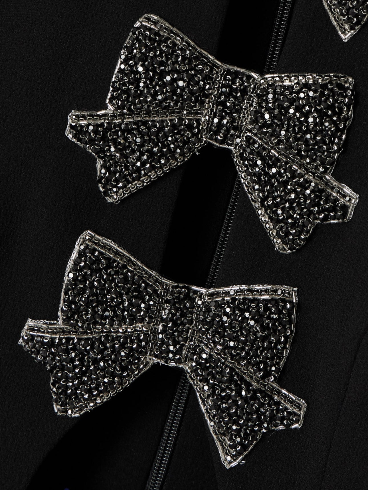 The Eliana Puff Sleeve Midi Dress epitomises timeless elegance infused with modern design. Adorned with beaded bow embellishments, the fitted bodice with front cut outs and rounded neckline beautifully complements the voluminous short puff sleeves, offering a sophisticated silhouette. Cinched at the waist, the pencil midi skirt is enhanced with a back split, adding an alluring touch to the design. A zip fastening at the back ensures a secure fit, while the lining provides utmost comfort. Polished and refined, this dress is a lovely choice for your upcoming event.